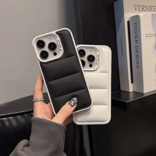 Crafted from premium leather, this black puffer phone case combines style and protection. The cushioned design absorbs shocks, while precise cutouts ensure seamless access to all functions.